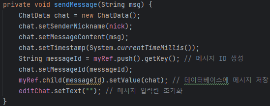 채팅을 위한 파이어베이스 리얼타임 데이터베이스를 참조하는 참조 변수 선언