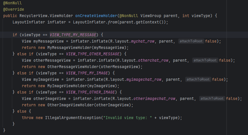 그리고 본인과 다른 사용자가 보낸 메시지를 구분해야 하므로 여러 종류의 뷰가 필요