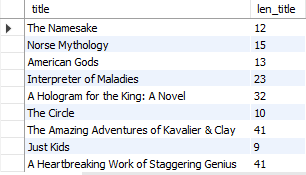 select title, char_length(title) len_title