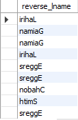select reverse(author_lname)reverse_lname